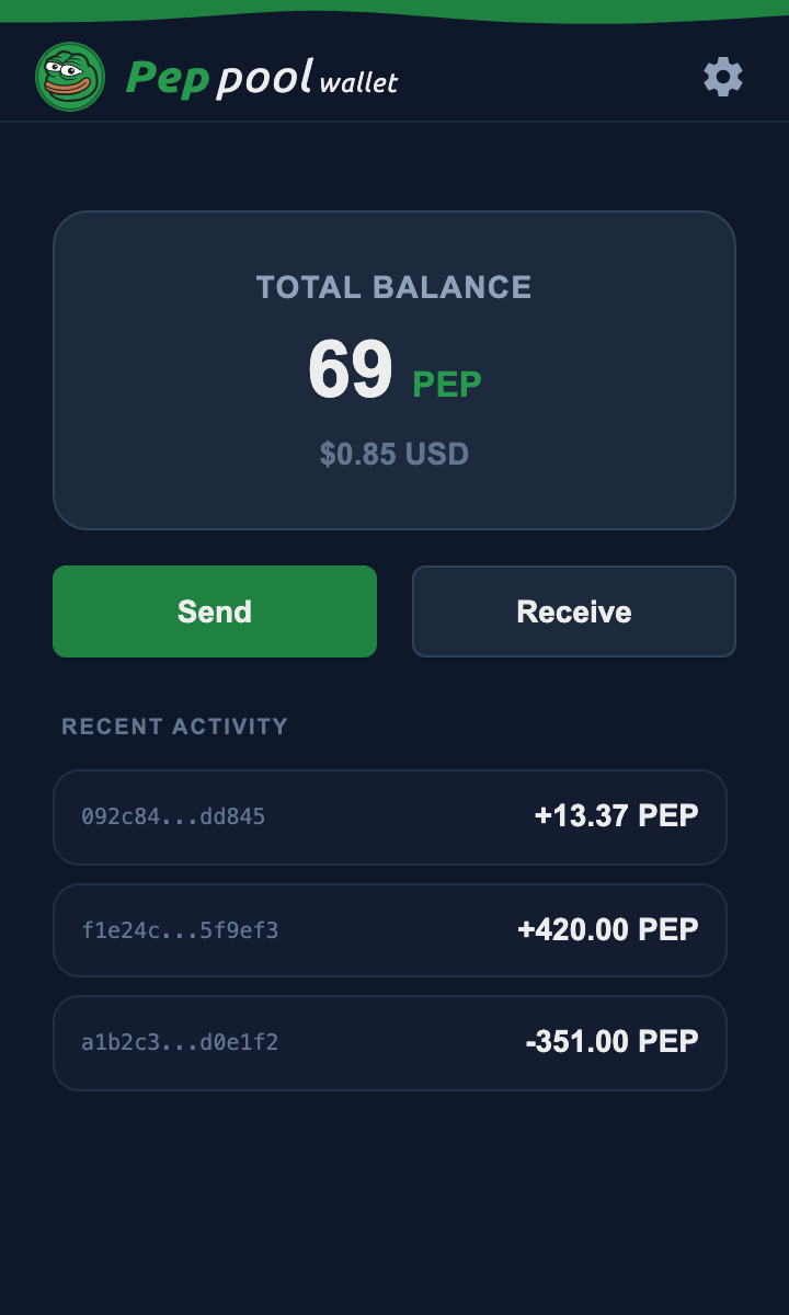 Peppool Wallet is a non-custodial browser extension wallet specifically designed for the Pepecoin network. It allows you to manage your PEP, interact with dApps, and more, all from within your Chrome browser.
